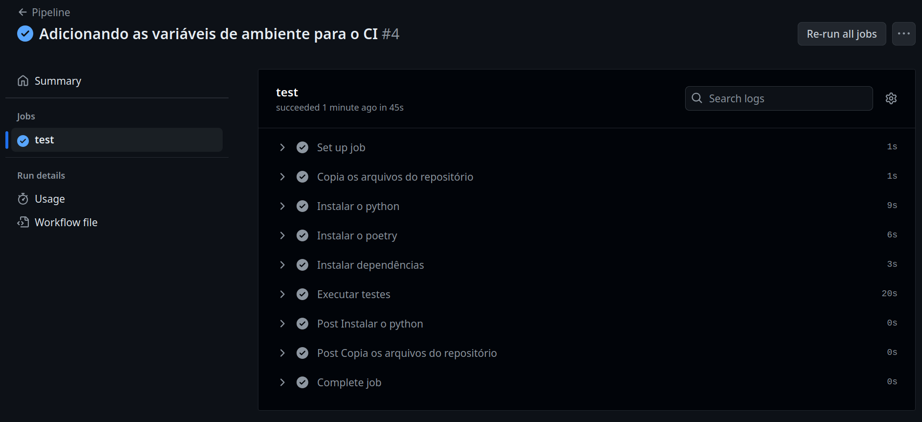 git commit -m "Adicionando as variáveis de ambiente para o CI"
